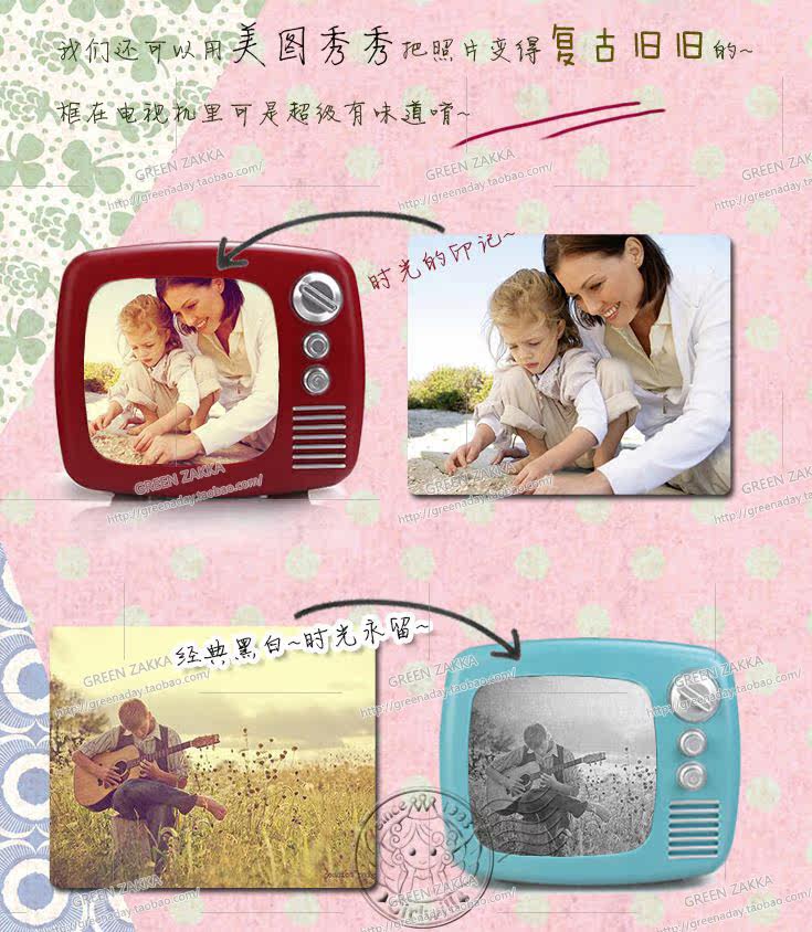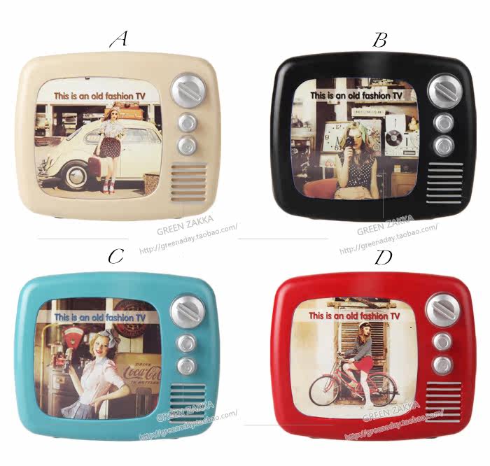 复古电视机,4色。是储蓄罐,也是特别的相框。可以替换不同风格的相片,播放独家电影。表白送礼物也很有创意啦~