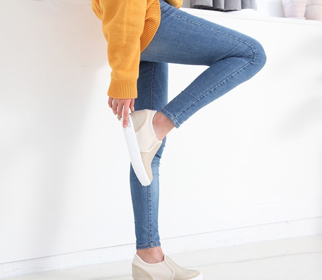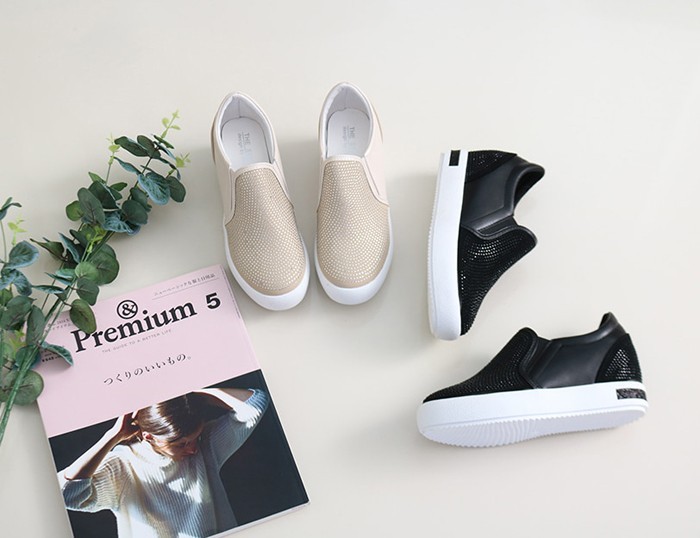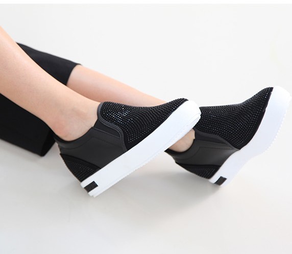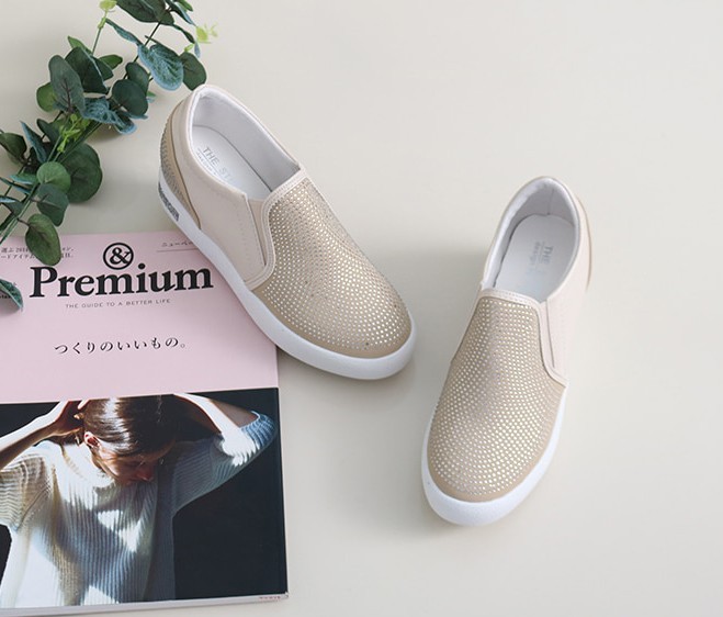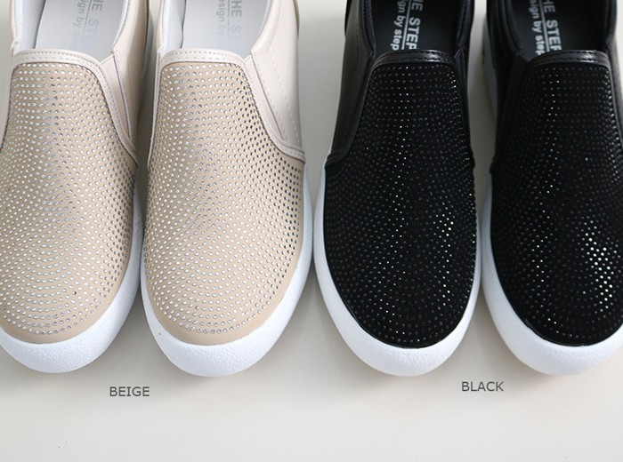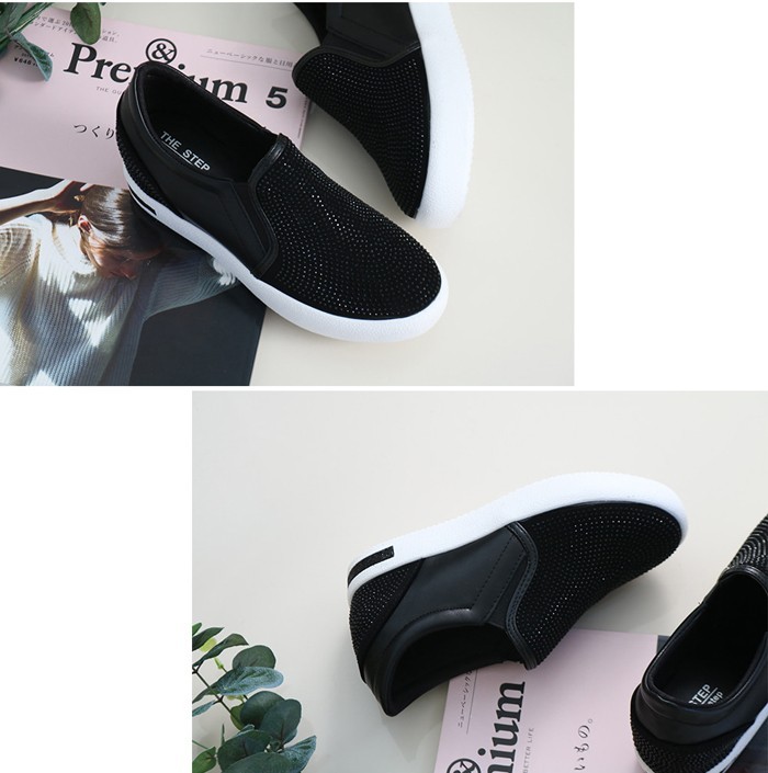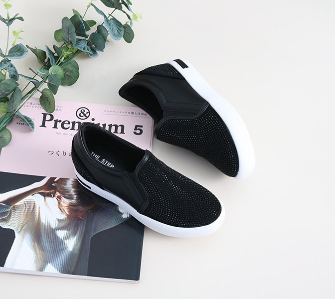 商品名:スリッポン レディース スニーカー キラキラ ラインストーン 2018 春 ファッション 靴 婦人靴