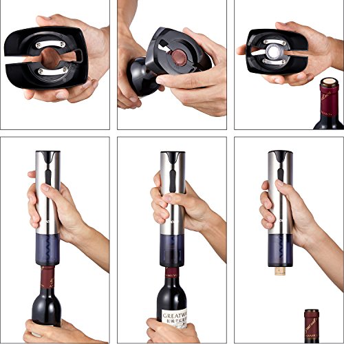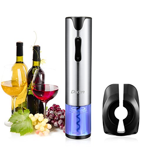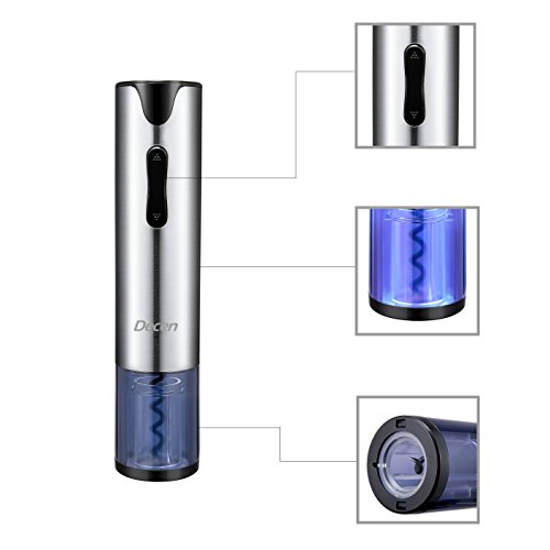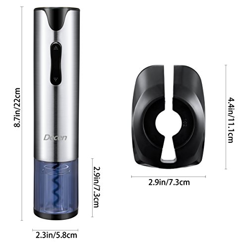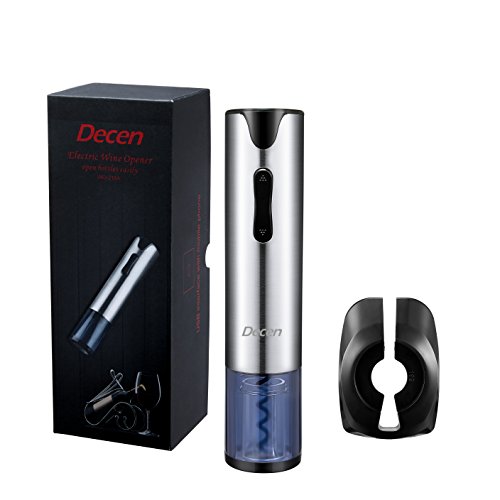 Decen Electric Corkscrew with foil remover was designed to fit most traditional wine bottles, simplify and quicken the operation smoothly and effortlessly. Help you save more time to spend with guests, sipping wine and visiting with friends. An ideal gift and necessity for you and your family! How to use the electric wine opener? Before first use, please make sure set the positive and negative anode of battery correctly, that is " " connect to " " and "-" connect to "-", you may refer to the image 2 in our product page Before removing the cork, any foil seal covering the cork must be removed first. A handy foil cutter comes included making the task quick and easy Place the wine opener on top of a wine bottle, making sure it remains in an upright position and not at an angle to the bottle Simply press the lower part of the switch to start. The corkscrew spiral will turn to enter the cork, then it will gradually remove the cork from the bottle, stopping once the cork has been fully removed from the bottle Lift the electric wine bottle opener away from the bottle, and remove the cork by pressing the upper part of the switch--the spiral turns in the opposite direction to release the cork Note: * Compatible with rechargeable batteries and alkaline batteries, but do not charge for the alkaline batteries * Keep it away from children to avoid any hurt * Read carefully the user manual before using Package included: 1* Decen Electric Wine Opener 1* Foil cutter 1* Instruction Manual Warranty: Aicok provide 2-year warranty and 100% satisfaction refund or replacement within 60 days of purchase 0
