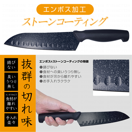 ●錆びない/臭いうつり無し/食材が離れすい/手入れラクラク! 切れ味も抜群なエンボス&ストーンコーティング包丁