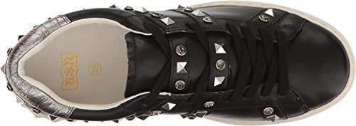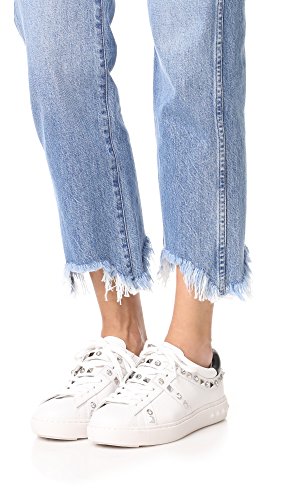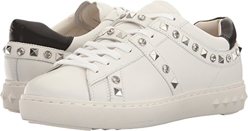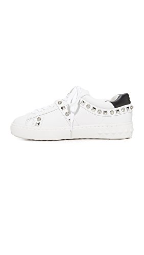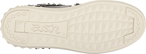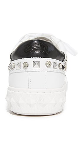Product DescriptionPyramid studs and glittering crystals add bold, edgy stile to these bright leather Ash sneakers. Contrast heel cap at the padded collar. Lace-up closure. Embossed platform. Rubber sole.0