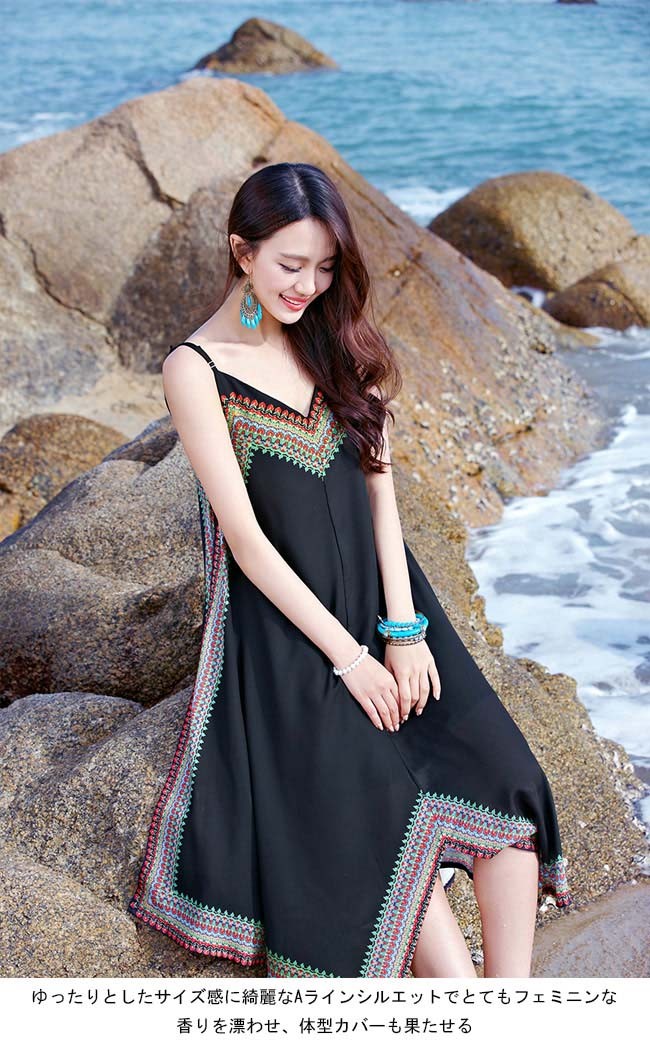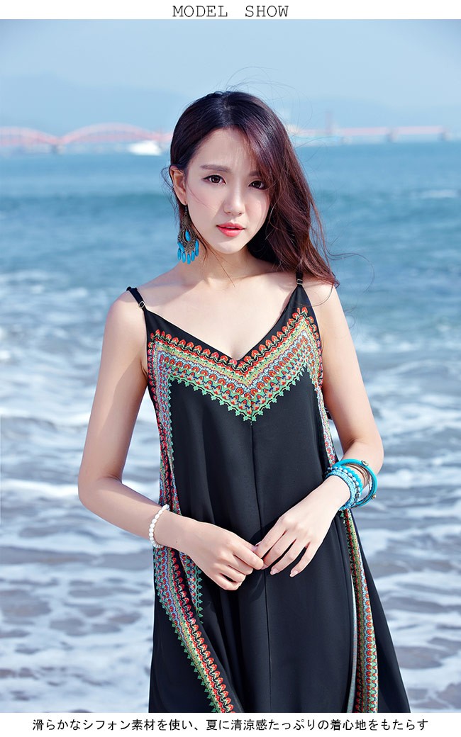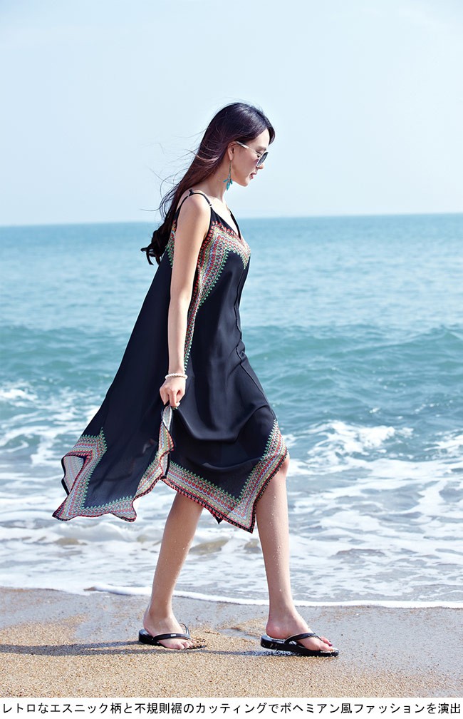 キャミワンピ シフォン レディース エスニック柄 ロング丈 女性用 シフォンワンピース ノースリーブ 不規則裾 ビーチウェア キャミソールドレスレディース用のキャミワンピが登場滑らかなシフォン素材を使い、夏に清涼感たっぷりの着心地をもたらすゆったりとしたサイズ感に綺麗なAラインシルエットでとてもフェミニンな香りを漂わせ、体型カバーも果たせるレトロなエスニック柄と不規則裾のカッティングでボヘミアン風ファッションを演出肩ベルトはバックル付きで長さがアレンジでき、よりフィット感を与える普段着としてもビーチウエアとしてもとても素敵、アウターとのコーデも十分に楽しめる一枚カラー:写真色素材 ポリエステルサイズ(cm) S M L XLS 総丈106 バスト84M 総丈108 バスト87L 総丈110 バスト90XL 総丈112 バスト93ご注意:※サイズは平置きサイズです。素人採寸ですので、若干の誤差がございます、ご了承ください。