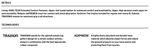 Studio : adidas Outdoor Adult Code Publisher : adidas Outdoor Adult Code Binding : Shoes Product Description This waterproof hiking shoe uses gore-tex® to keep your feet dry. A soft suede leather upper combined with a high abrasion mesh upper for extra durability, enhanced comfort, and breathability. Two insoles are included for customizable regular or roomy fit. An adiprene® insert for comfort and shock absorption. Traxion® outsole for maximum grip in all directions. 0