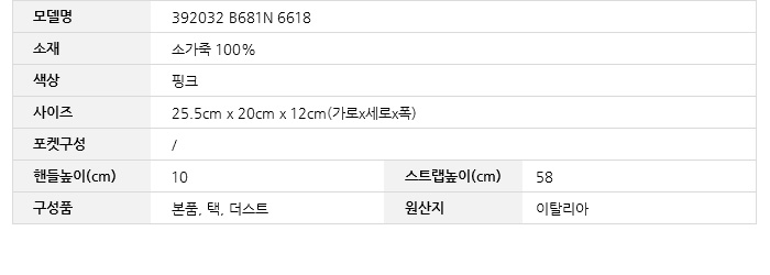 사이즈 사이즈 : 25.5cm x 20cm x 12cm(가로x세로x폭)