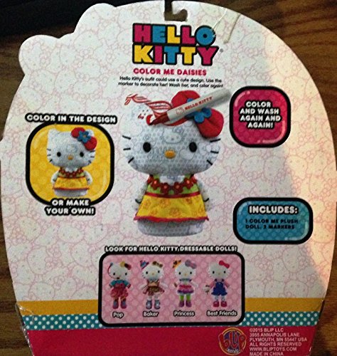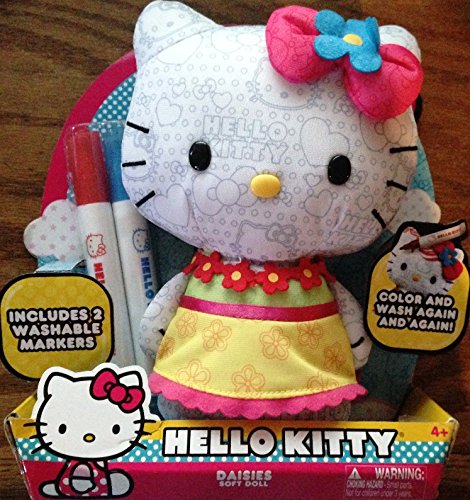 Hello Kitty's outfit could use a cute design. Use the marker to decorate her! Wash her, and color again! Includes: 1 Color Me Soft Doll & 2 Markers.