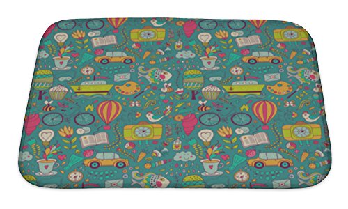 Gear New No Slip Microfiber Memory Foam Pattern Childish Doodles Pattern Set of Differ Bath Rug Mat, 24" X 17"
