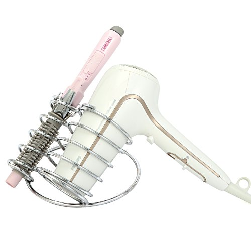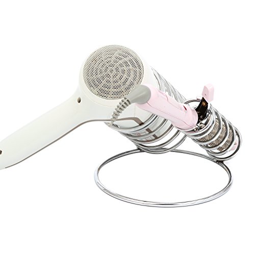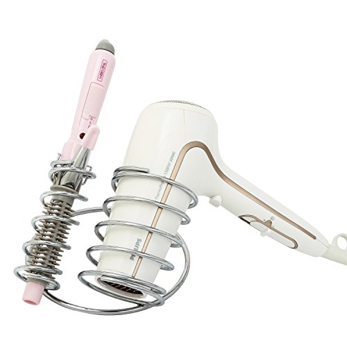 Chrome-Plated Steel Spring-Shaped Hair Tools Holder, Countertop Blow Dryer & Curling Iron Rack