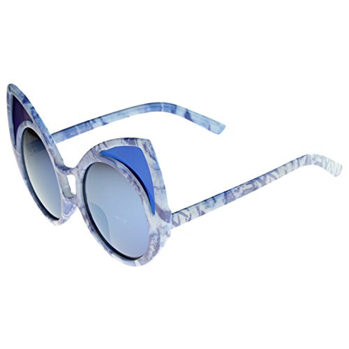 zeroUV - Women's Oversize Colored Frame Mirror Lens Cat Eye Sunglasses 52mm