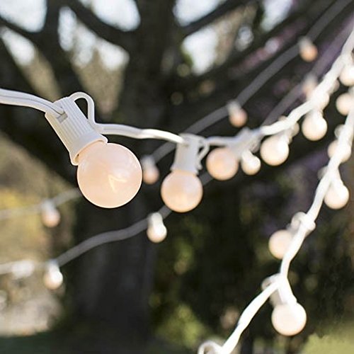 The Pearl Globe Bulbs are INCLUDED! Our pearl globe string lights are perfect for weddings and events. Each incandescent G30 bulb has a diameter of 1.25 inches. This 50 foot long C7 white wire strand has 50 incandescent bulbs with E12 sockets spaced 12" apart. Made with 18-gauge, SPT-1 wire. Safe for outdoor usage.