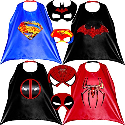 Set of 4 capes & 4 masks, contain superman, spider-man, batman, deadpool. Suitable for children 3-10 years old.