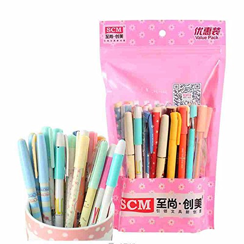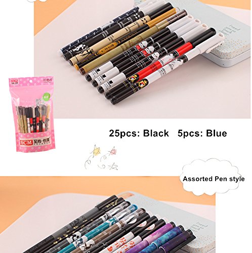 SCM Korea Creative Cute Colorful Style Gel Pen, 0.38mm Black & Blue INK (pack of 30)