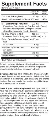 Natural herbal blend for hair loss & thinning hair? Combats hair loss and thinning hair with a nutritional approach - a natural herbal blend that blocks the production of DHT and supports hair regrowth from the inside-out. The benefit is stronger, thicker, healthier hair.? Research indicates that one of the primary causes of hair loss and thinning hair is due to increased level of DHT (dihydrotestosterone), the "bad" form of the hormone, testosterone. As men and women age, DHT builds up in the scalp and damages the hair-producing follicles. This eventually destroys the hair follicles which results in hair loss. NuHair DHT Blocker combats hair loss and thinning hair with a nutritional approach - a natural supplement that nourishes and supports hair regrowth from the inside out. The benefit is thicker, fuller, healthier hair for men and women.? NuHair DHT Blocker is formulated to block the negative effects of DHT, naturally! ? ?Helps to inhibit DHT, a leading cause of hair loss in men and women? ?Works well for all hair types? ?Best when used in conjunction with the NuHair Hair Regrowth tablets and NuHair Thinning Hair Serum for a complete hair regrowth system?Feature