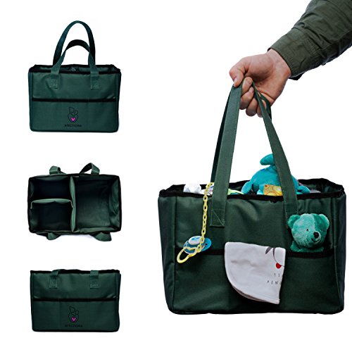 - KEEPS THINGS ORGANIZED – When newborn diaper storage becomes a problem, you need a baby caddy organizer to simplify your life. With 3 internal compartments and 3 front pockets, Afectiona Baby Caddy Organizer helps you keep everything organized and within reach. Does it happen to forget where you put the diapers and the baby stuff? You no longer have to worry. You know it, it's right in the Baby Caddy Bag !