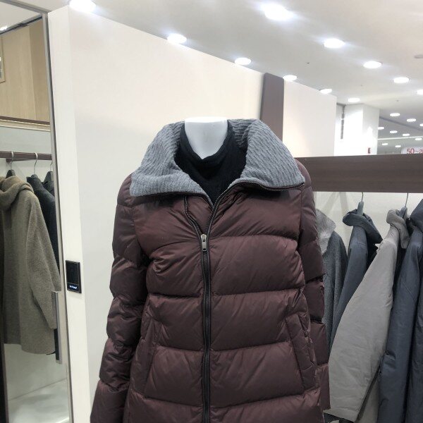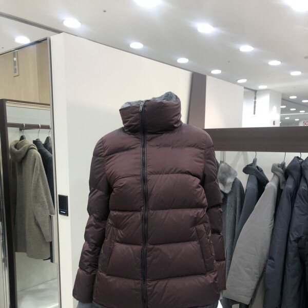 톤 다운된 세련된 레드 색으로 거위솜털로 된 다운 점퍼 패딩이다.보온성과 복원성, 경량성 모두에서 우수하다.