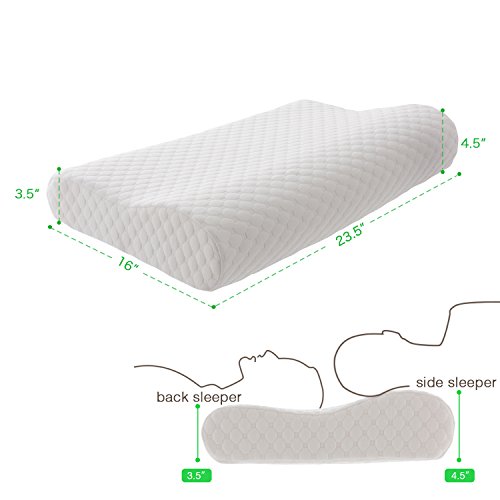 Pillow measures 23.5 in x 16 in. Orthopedic neck pillow suits back, side and stomach sleepers, especially ideal for chronic pain sufferers.