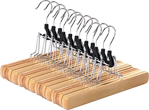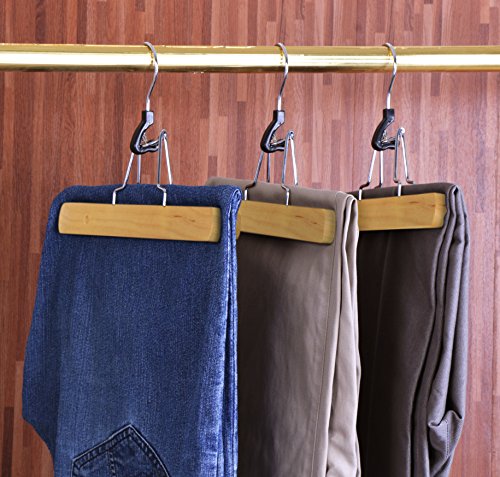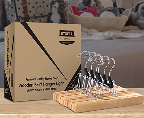Non-Slip Wooden Hanger - Slack Hanger - Wood Skirt Hangers - (Pack of 12) by Utopia Home (Natural Finish)