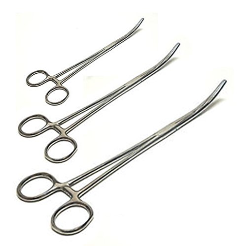 SET OF 3 PEAN HEMOSTAT CURVED 6 8" 10" FORCEPS TONGS FULL SERRATED STAINLESS STEEL (HTI BRAND)