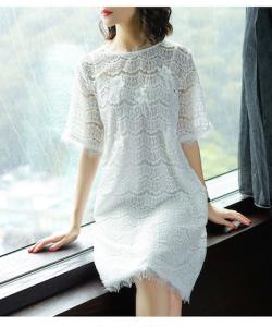 レースワンピース 上品 大人カジュアル 大人ガーリー ミニ丈 ホワイトワンピース春夏 爽やか ゆったり