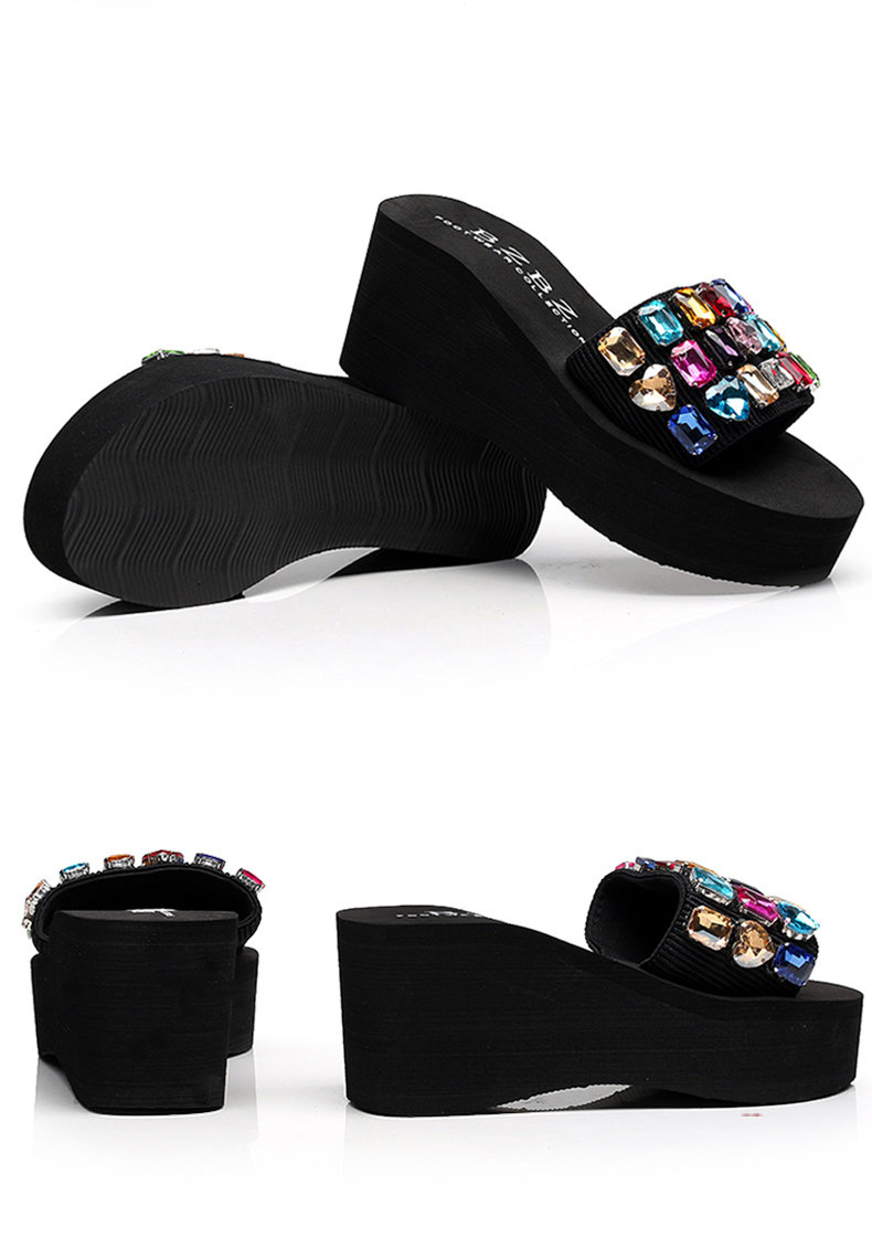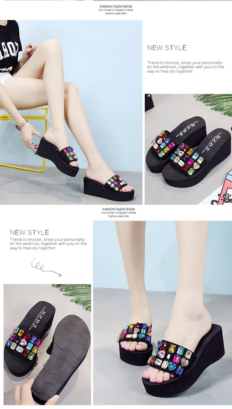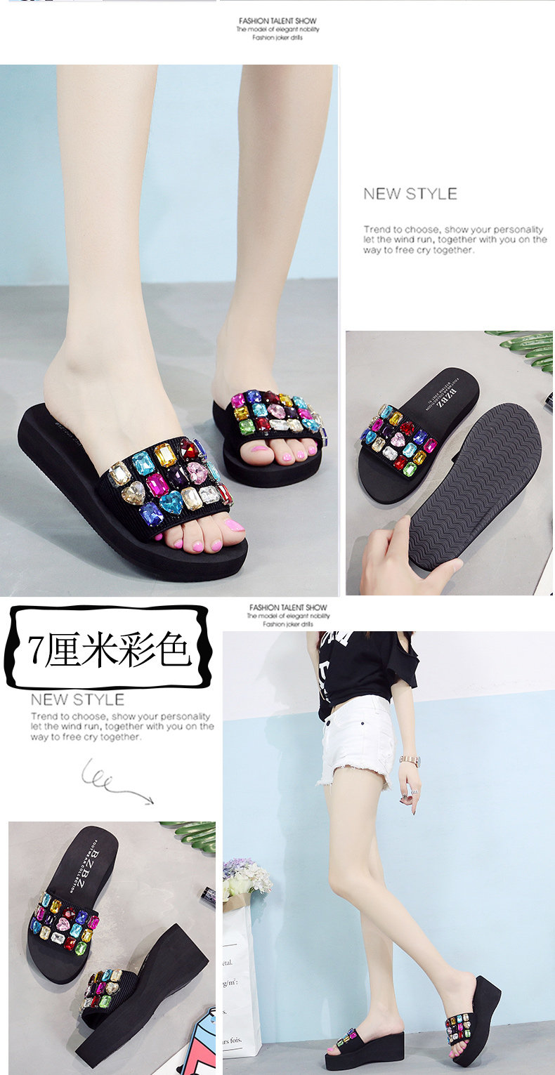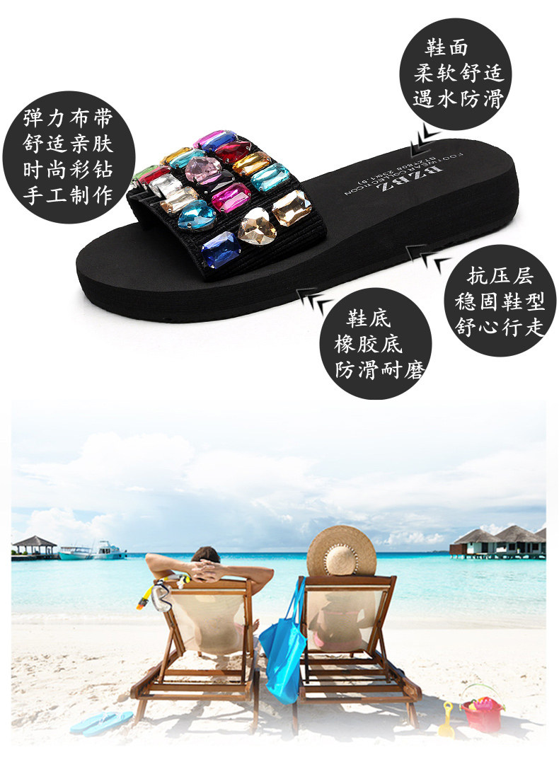 手工拖鞋女夏松糕鞋坡跟一字拖外穿高跟凉拖鞋厚底时尚防滑沙滩鞋