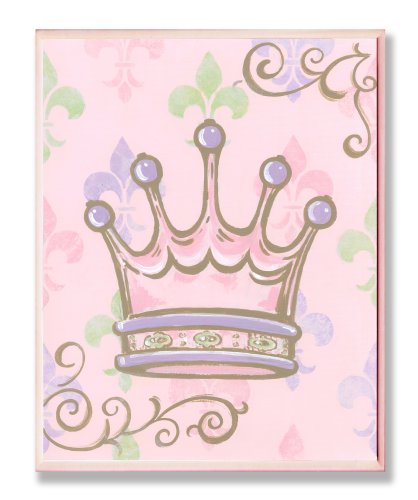The Kids Room by Stupell Crown with Fleur de Lis on Pink Background Rectangle Wall Plaque