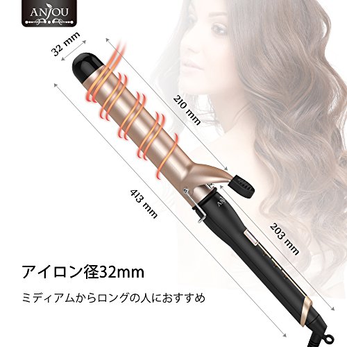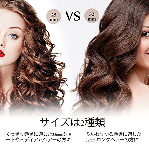 アイロン径32mm:セミロングやロングヘアーのアレンジに使いやすい。髪の立ち上がりやナチュラルカールに最適。