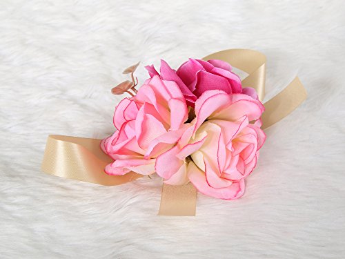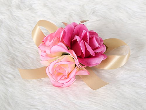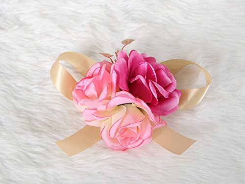 Wrist flower corsage Pretty Wedding Bridal Bridesmaids (Fuscia pink)