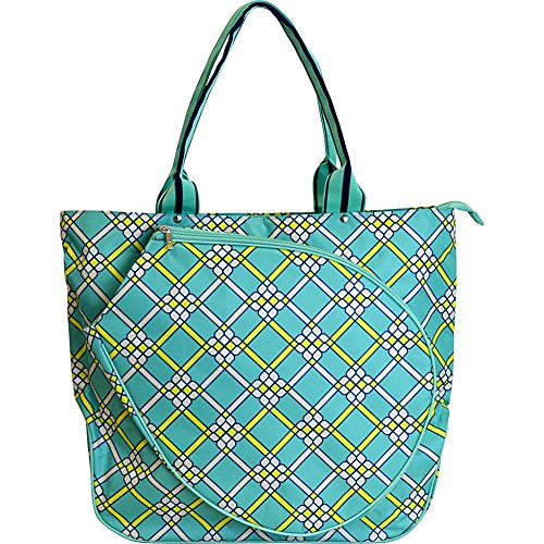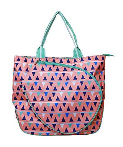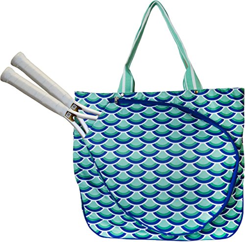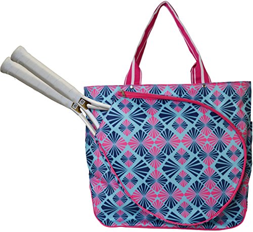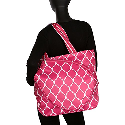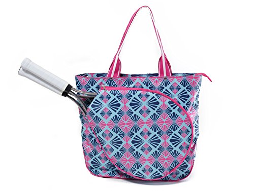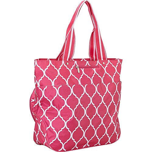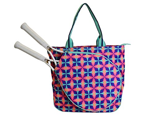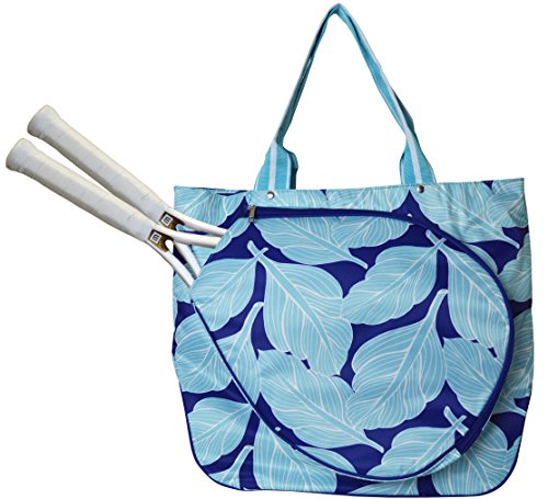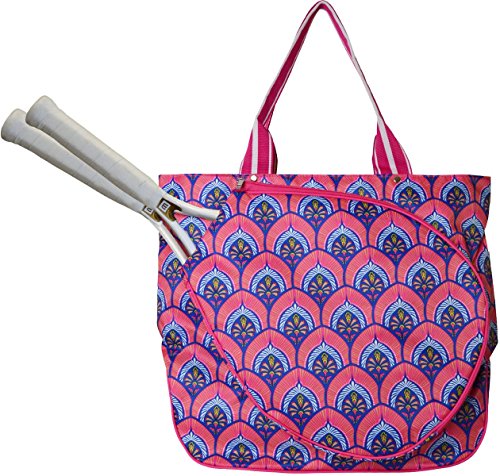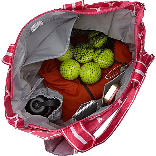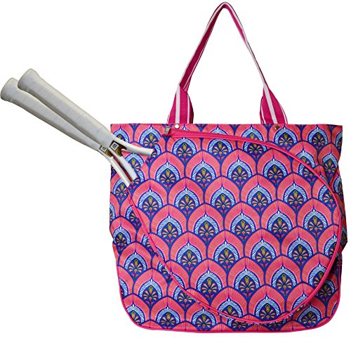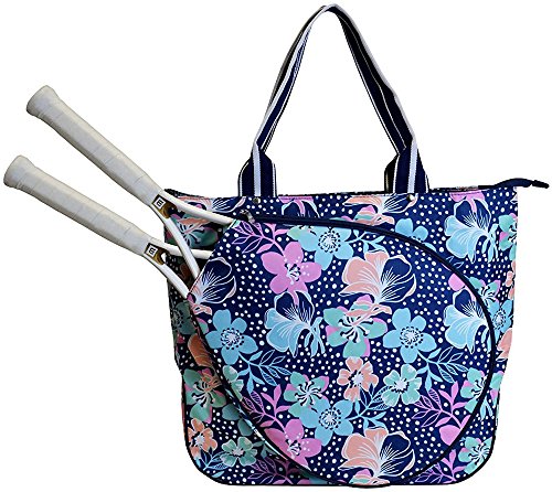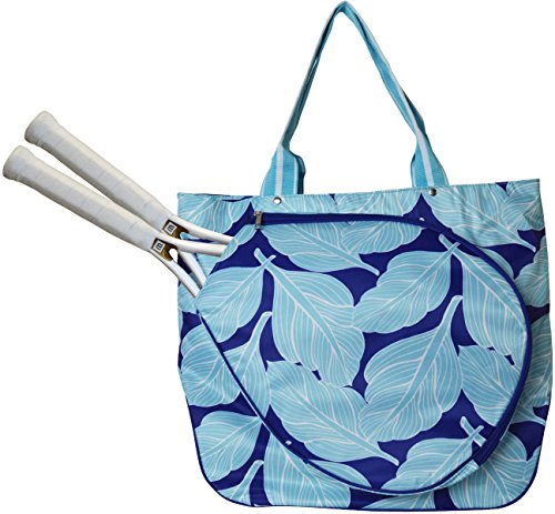 Product Description This great tennis tote features a large exterior pocket perfect for storing up to 2 full size tennis racquets, a comfortable webbed shoulder strap, and ample interior pockets for balls and other necessities. Also includes an exterior clip for easy hanging and metal feet on base. 0