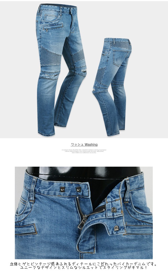 立体ヒゲとビンテージ感あふれるディテールにこだわったバイカーデニムです。