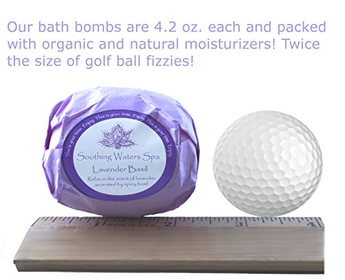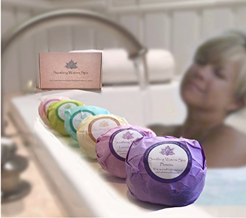 MOISTURIZING SPA EXPERIENCE- with these large 4.2 oz. natural and organic, luxuriously rich bath bombs from Soothing Waters, turn your bathtub into a spa experience complete with fizzies and delicious scents that are fresh and natural, not overpowering. Tahitian Vanilla, Plumeria, Eucalyptus, Citrus, Lavender Basil, and Aloe & Green Tea all come in one box ready for you to pick your experience. Light a candle and enjoy YOUR time!