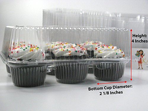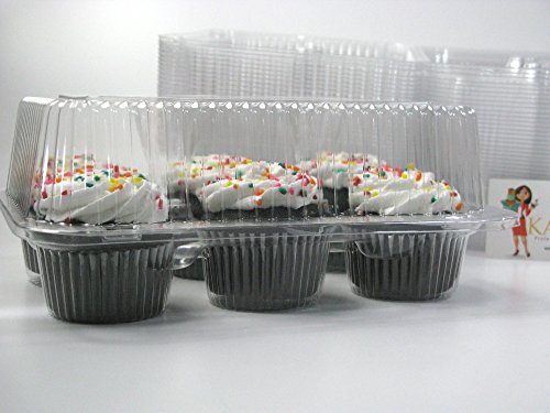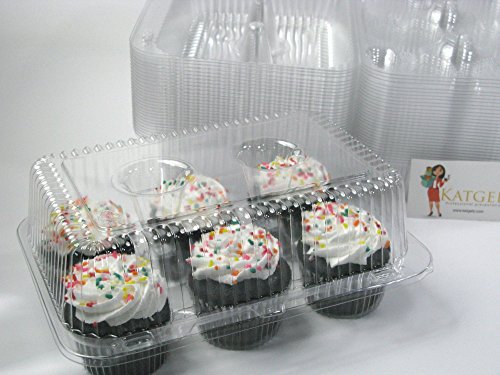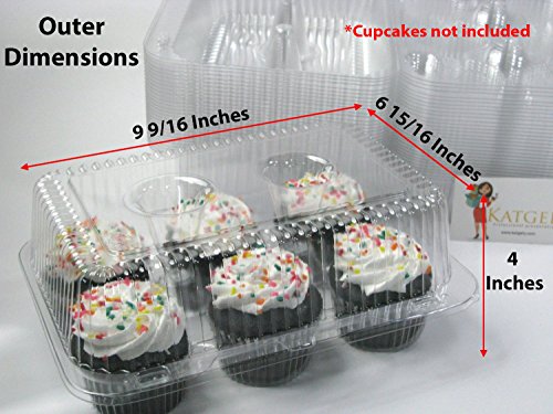 Katgely 6 Cavity Cupcake Containers with Deep Dome (Pack of 50)
