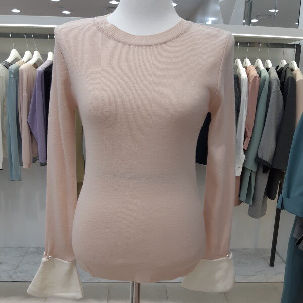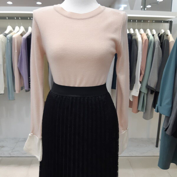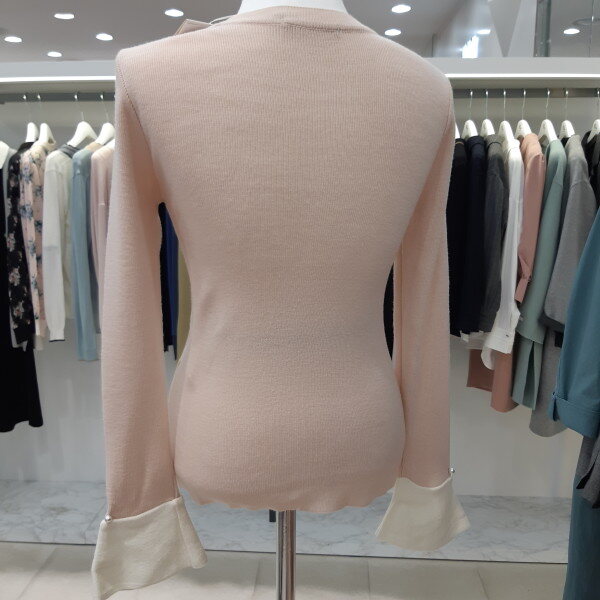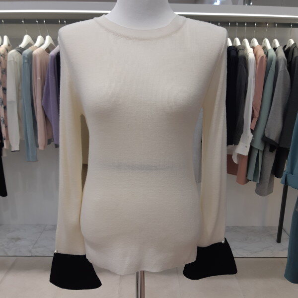 KL 커프스소매 니트 티셔츠 [블랙/아이보리/핑크]