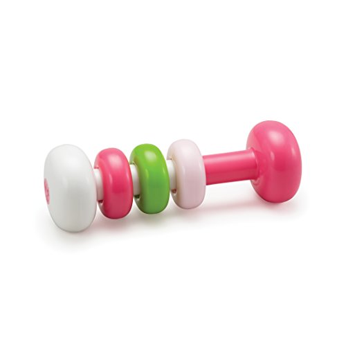 Easy to hold and simple to shake, the vibrant colors and pleasing sound will fascinate the child as the rings slide and click together
