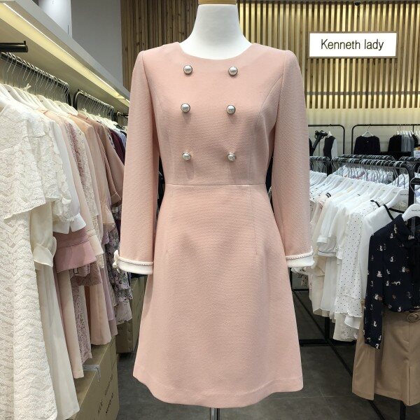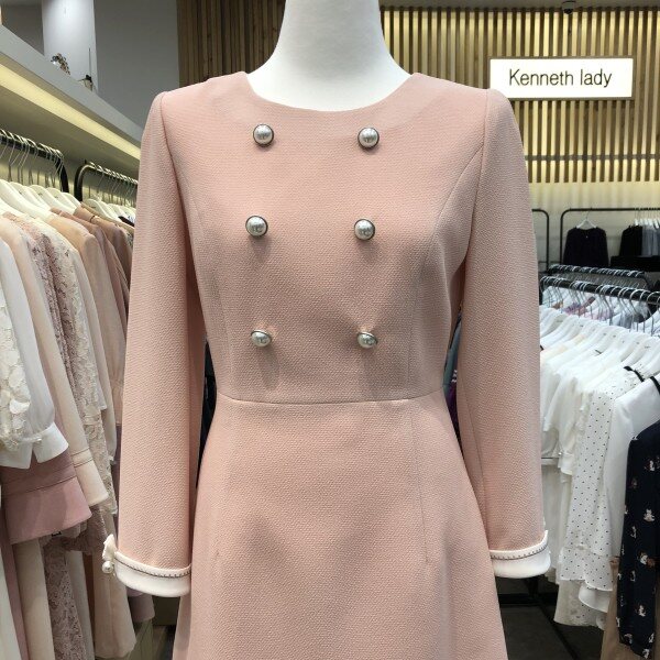 깔끔단정한 진주포인트 살구핑크귀욤원피스단정한 라운드넥에 고급스럽게 진주단추가 포인트 되서 단아하고 러블리한 원피스에요^^살짝A라인이라 다리가 길어보이고 귀여워보이는 산뜻한 원피스예요