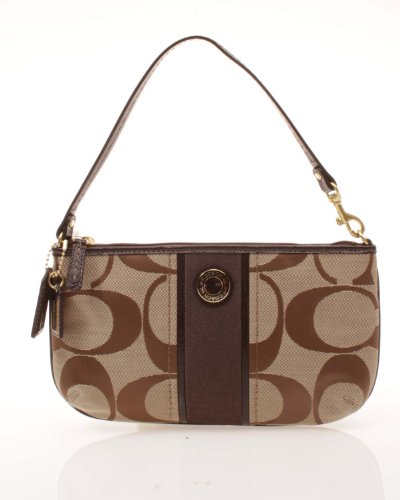 COACH 49518 Signature Stripe Large Wristlet - Khaki/Mahogany (SOLD)