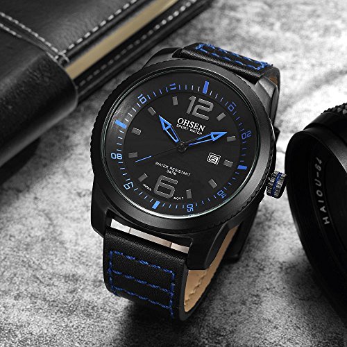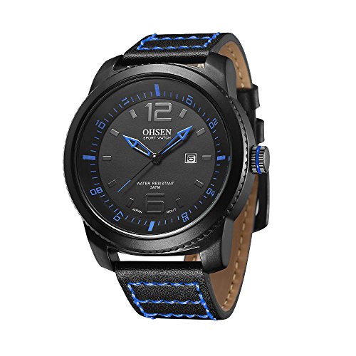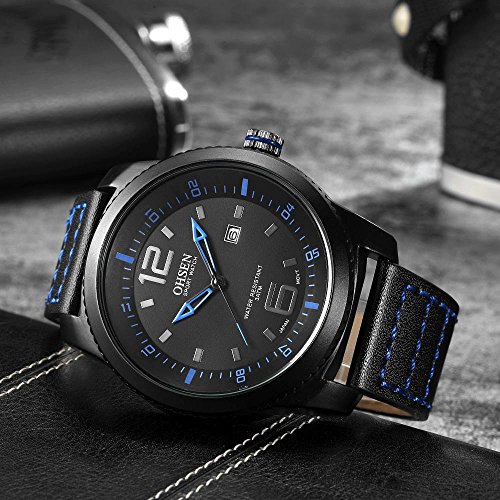 -. Feature : The cool leather watch is crafted for men. It has a sturdy looking, you will feel comfortable when wearing it. Simple and cool style. Time is precise. It also symbols men's force. You can get a compliment on the fashionable appearance. It is easy to put on or take off. The perfect combination of fashion and sport. / Even though it is a pretty inexpensive watch, the feature set is perfect for young people. Great fun watch for teenagers. Great watch for the P.R.Ice. Good functions and easy to set. The watch is very simple and easy to use buttons. It is very easy to change the time and date. You will be happy with the watch. / Black metal case. Black leather strap. Analog dial. Buckle clasp. 50mm case diameter. 13.2mm case thickness. 24mm band width. 25cm bracelet length. Luminous, you can see the time clearly in the night. Suitable for people ages 18 to 60, outdoor enthusiasts, men, high school students, college students. / Functions: double machine core number, alarm clock, date, LED display, stopwatch. Applicable occasions: outdoor sports activities, student sports classes, students' lessons. The watch is designed for people who are interested in challenging outdoor sports. You can have a healthy life at any time. / Not suitable for shower, swimming and diving. The band is made of high polymer material, and it's skin friendly. You can use cotton cloth to clean it.