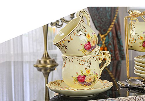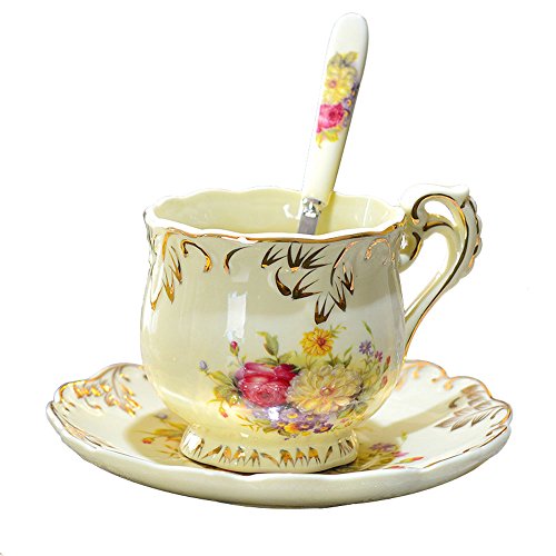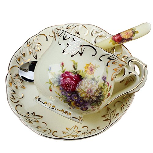 -. Title : Lautechco European Rose Style Porcelain Coffee Cup Set with Saucer Spoon Garden Style Cups 200ml/6.7FL.OZ
