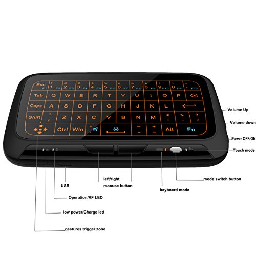 The laest model H18+ backlit mini wireless keyboard incude best desgined, great matte touch feeling,advanced touchpad technology,it not only a mini keyboard,also is a remote control,we promise will you a 100% refund if not satisfied with our H18+ mini keyboard. Quick View: For people when see tv show or movies,if had some annoying and bad feeling, because a bad remote control,some is long distance and hardly control, or type slowly,or your battery is dead,now only place one,our mini wireless keyboard all help you slove it and let you had a good feeling when see your tv show. System Requirements -HID compatible USB HOST device