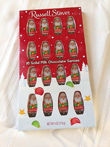 -. Binding : Misc. -. Brand : Russell Stover -. EAN : 0077260008138 -. Feature : Handmade in Small Batches / Made in the U.S.A. / Free standard shipping on orders over $25 from Russell Stover Chocolates / Over 85 years of making chocolates! / Made with Russell Stover fine chocolate blends of milk, dark or white. -. IsAdultProduct : 0 -. Label : Russell Stover -. Manufacturer : Russell Stover -. NumberOfItems : 1 -. PackageQuantity : 1 -. ProductGroup : Grocery -. ProductTypeName : GROCERY -. Publisher : Russell Stover -. Size : 4 oz -. Studio : Russell Stover -. Title : Russell Stover Solid Milk Chocolate Santas, 4 oz. Box -. UPC : 077260008138