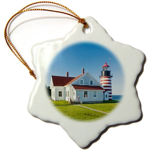 3dRose orn_90723_1 West Quoddy Head Lighthouse, Lubec, Maine-Us20 Jmo1278-Jerry and Marcy Monkman-Snowflake Ornament, 3-Inch, Porcelain