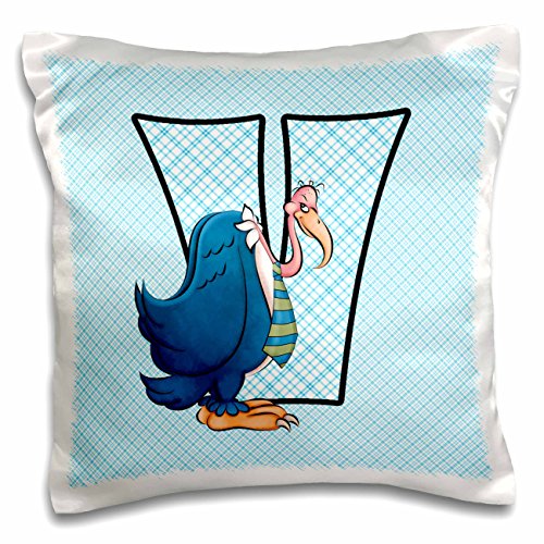 3dRose V Is For Vulture In Blue for Boys Baby & Kids Monogram V in Gingham Prints - pillow Case, 16 by 16-Inch (pc_62883_1)