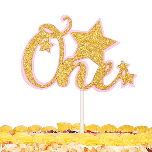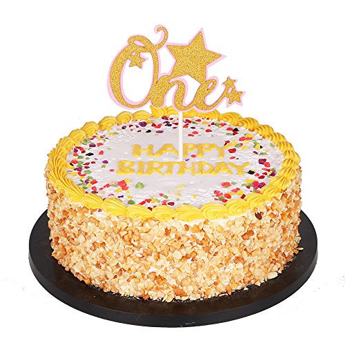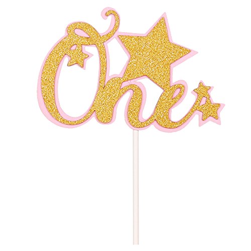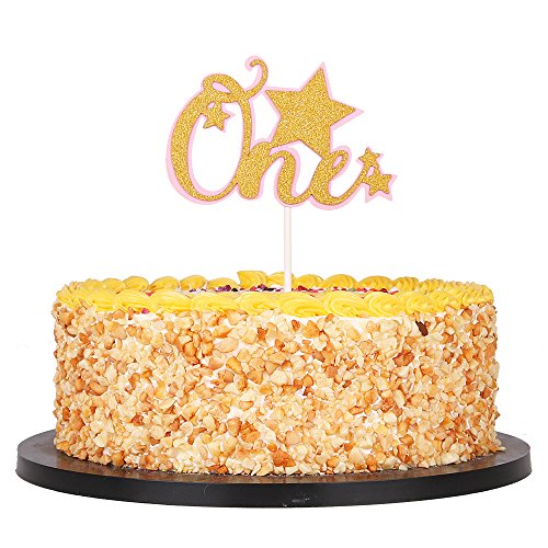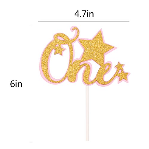 QIYNAO Pink and Gold Glitter One Cake Toppers Party Decorations