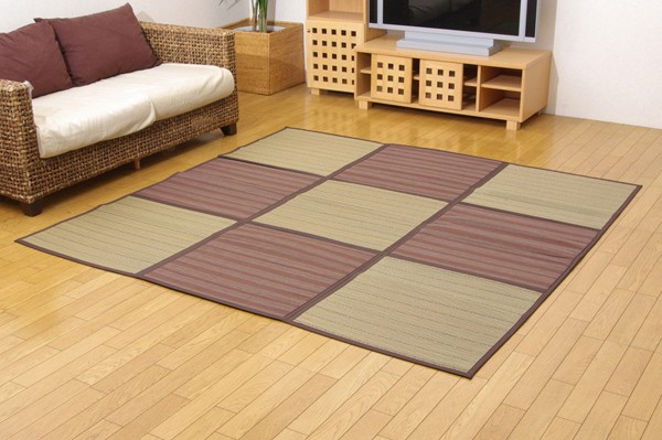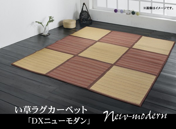 【商品名】市松柄 い草ラグカーペット 『D×ニューモダン』 ブラウン 約200×200cm 正方形(裏:不織布)