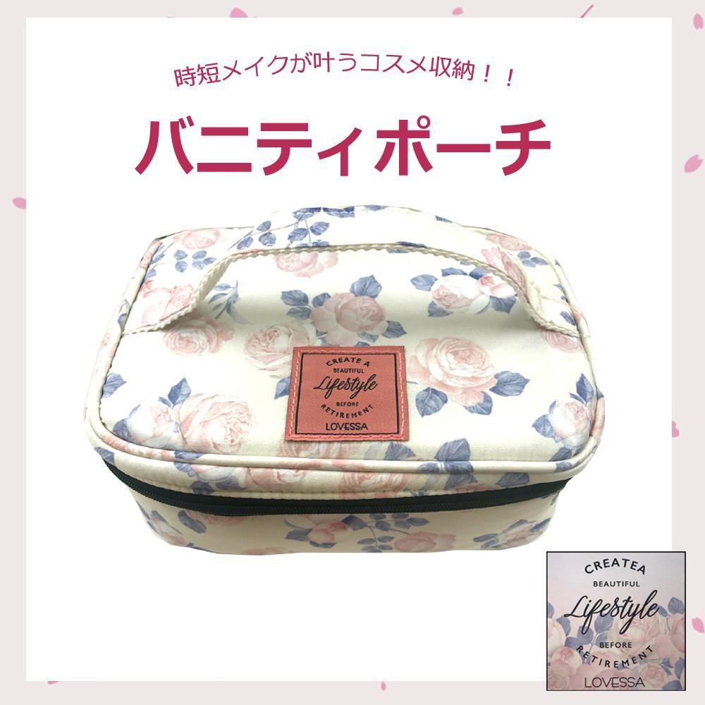 ひと目で全体が見渡せるので、使いたいアイテムがすぐに見つかる!収納力抜群のバニティポーチです♪ 製造国:中国 素材・材質:本体外側/ポリエステル本体内側/裏地:ポリエステル、芯材:ポリエチレン・ポリプロピレン、底面・筆カバー・フラップポケット:塩化ビニル樹脂 商品サイズ:W190×H80×D130mm ※サプライヤー直送品 ご注文後2~3営業日後の出荷となります【商品名】LOVESSA コスメポーチシリーズ バニティポーチ TP12167