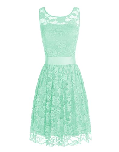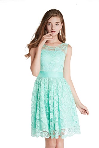 Beautiful and soft lace decorated in the whole dress, satin waistband shows out your attractive figure, semi sheer on shoulder part adds some mystique for you