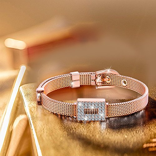 Fits up 5.3 inches to 7 inches wrist | Central rectangular charm: 0.36*0.5*0.18 inches and removable | Band width: 0.23 inches.