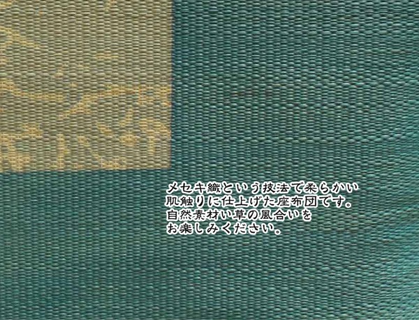 素材:側地=い草(九州産) ※メセキ織 中材=上下)フェルト12mm+中芯)ウレタンフォーム25mm(三層)