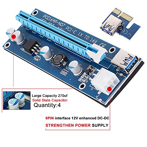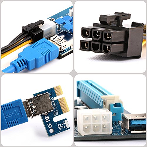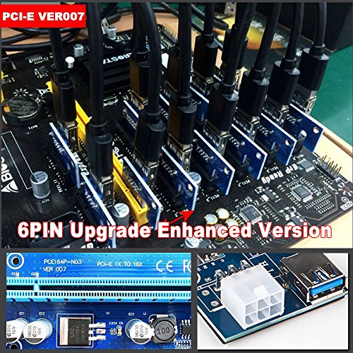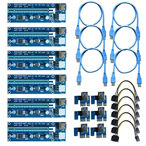 Leboo 6-Pack PCIE Riser VER 007 PCI Riser 6 PIN 1x to x16 Powered Riser Adapter Card w/ 60cm USB 3.0 Extension Cable & PCI-E to SATA Power Cable - GPU Riser Adapter