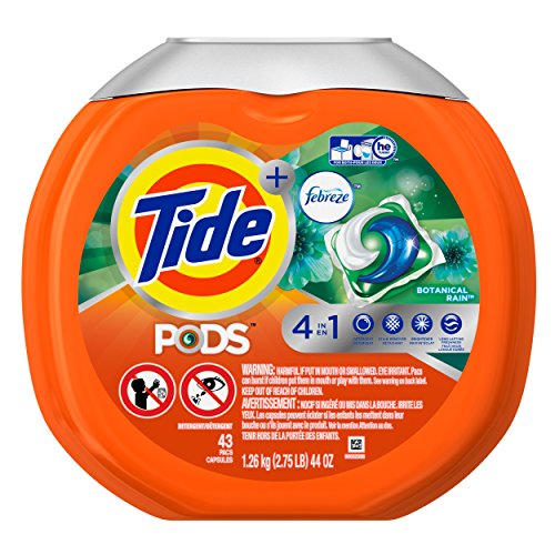 -. Title : Tide PODS Plus Febreze Odor Defense 4 in 1 HE Turbo Laundry Detergent Pacs, Botanical Rain Scent, 43 Count Tub