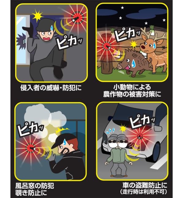 | 人の動きを感知して回転灯と音で威嚇や警告をする警報装置です。 |