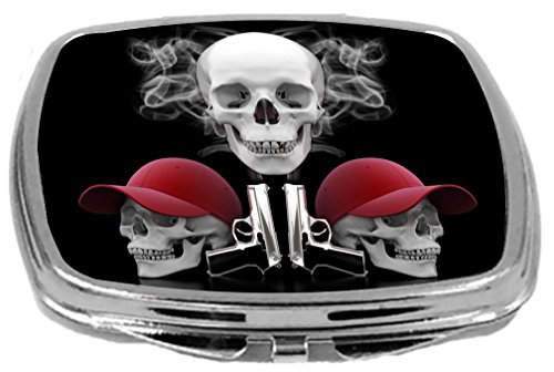 Rikki Knight Compact Mirror, Smoking Skulls In Caps